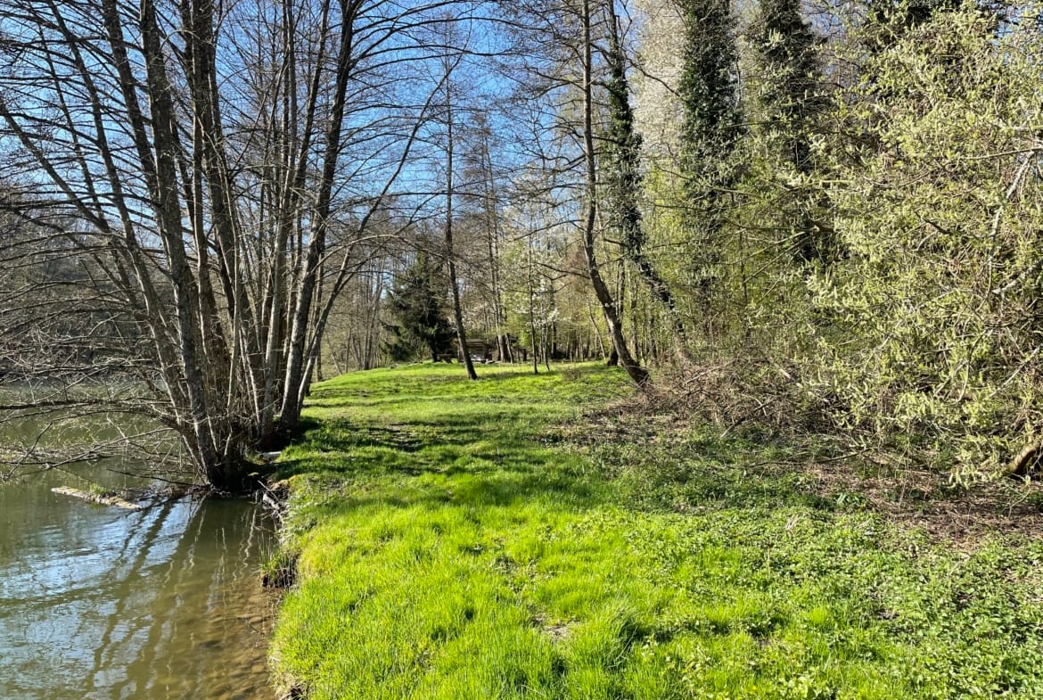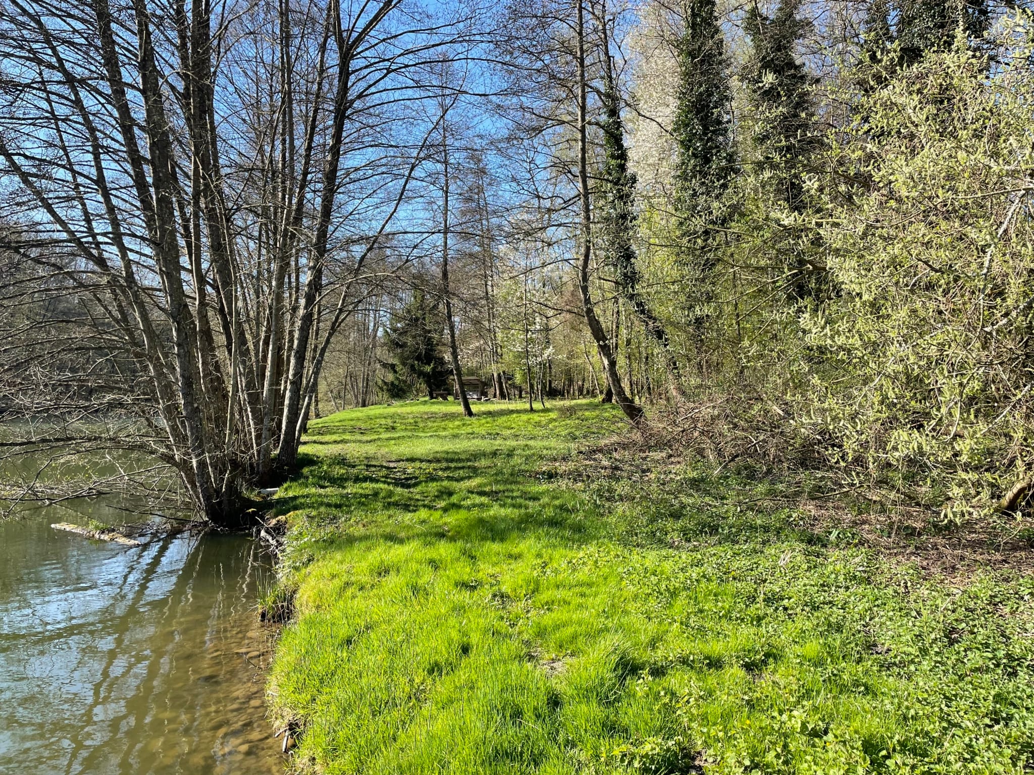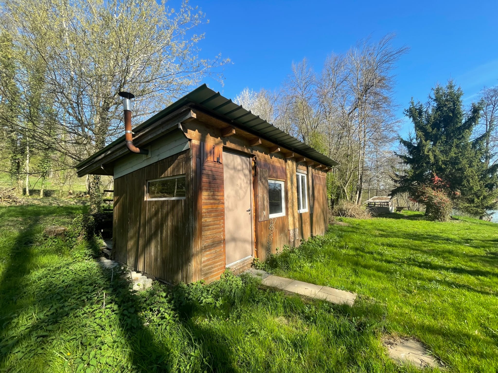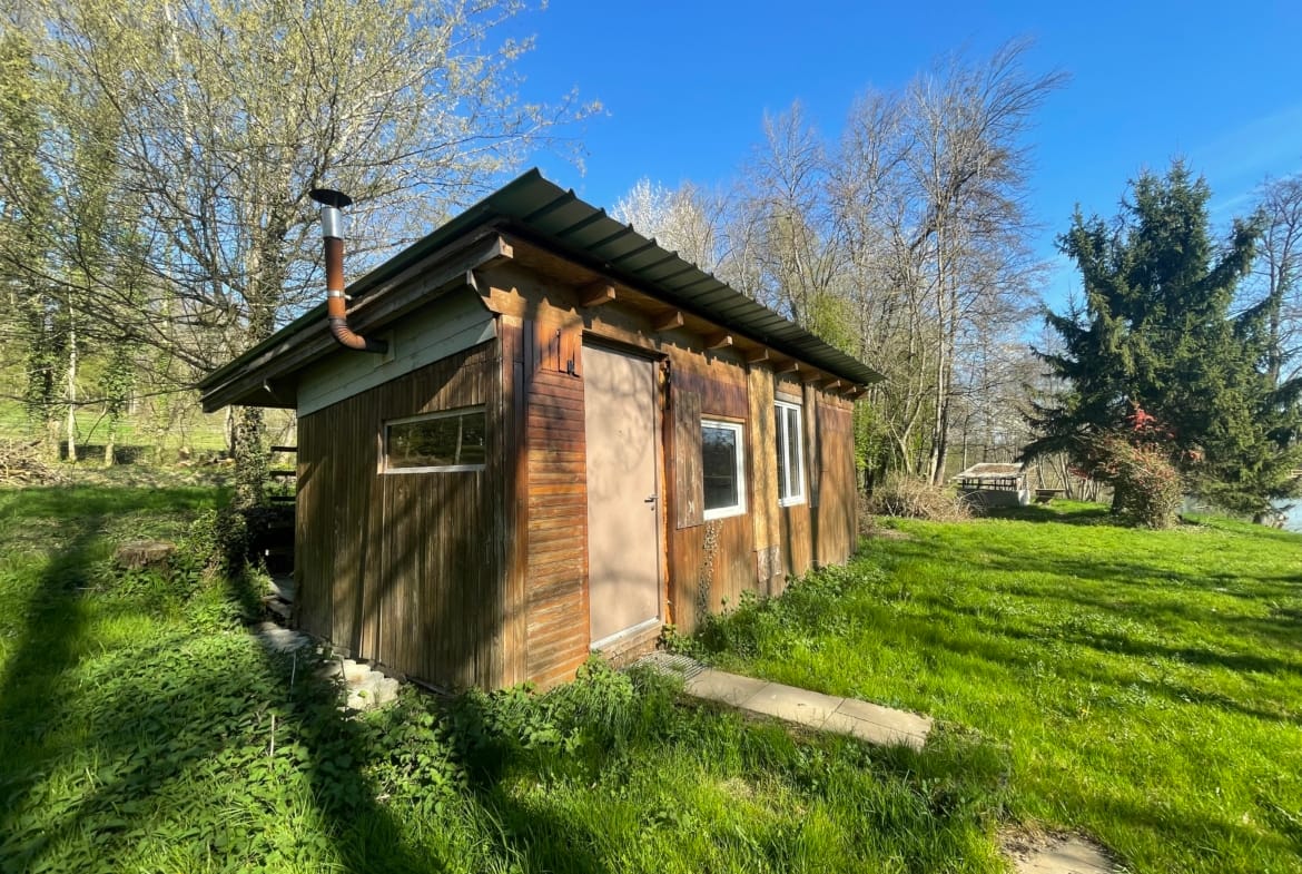 Les zones enherbées, partiellement aménagées, accueillent un cabanon en bois d’environ 20 m², bien entretenu, pouvant être utilisé comme espace de détente ou de réception. Un ruisseau longe la propriété, renforçant son intérêt paysager.
