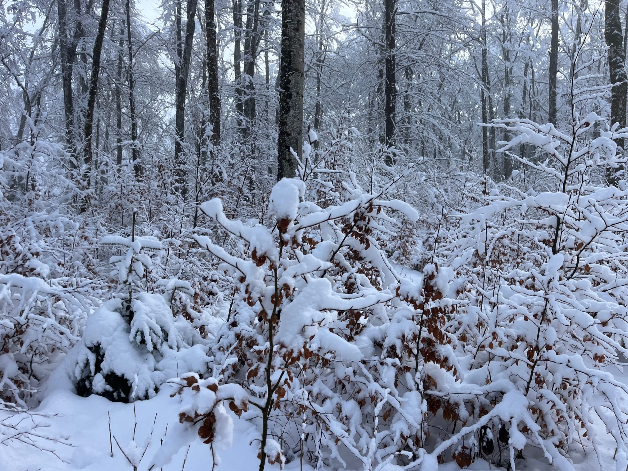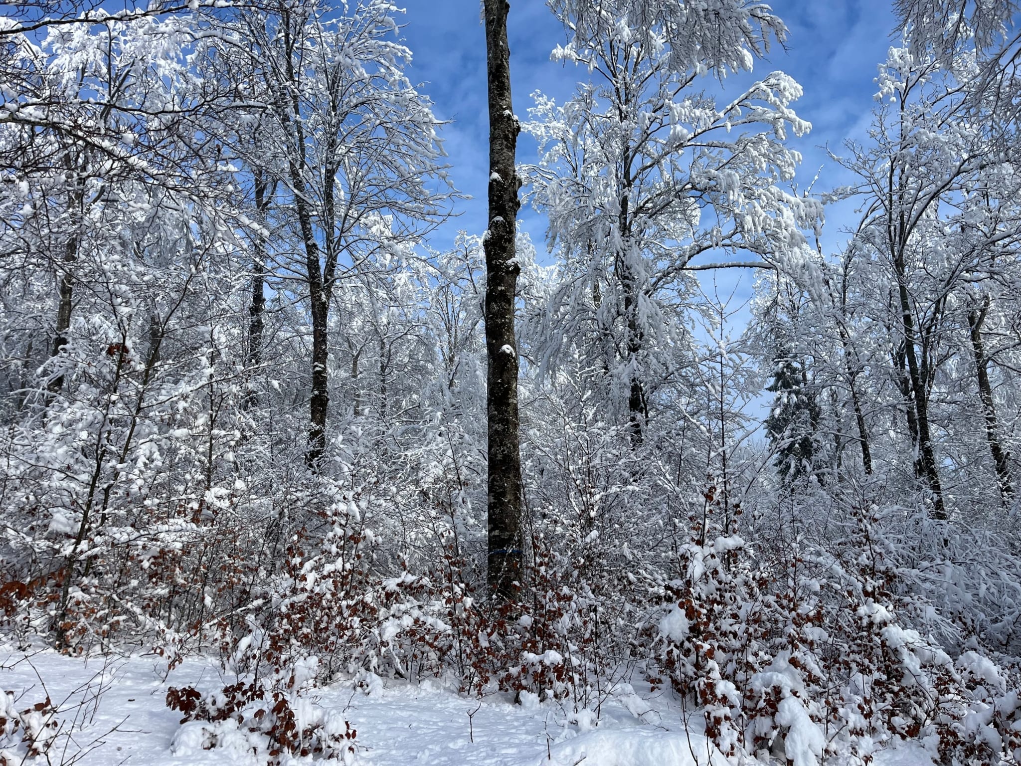 La régénération naturelle étant installée, mêlant hêtre, érable sycomore, tilleul et quelques résineux tels que l’épicéa et le sapin, principalement localisés dans les trouées. La hauteur dominante avoisine les 20 m.