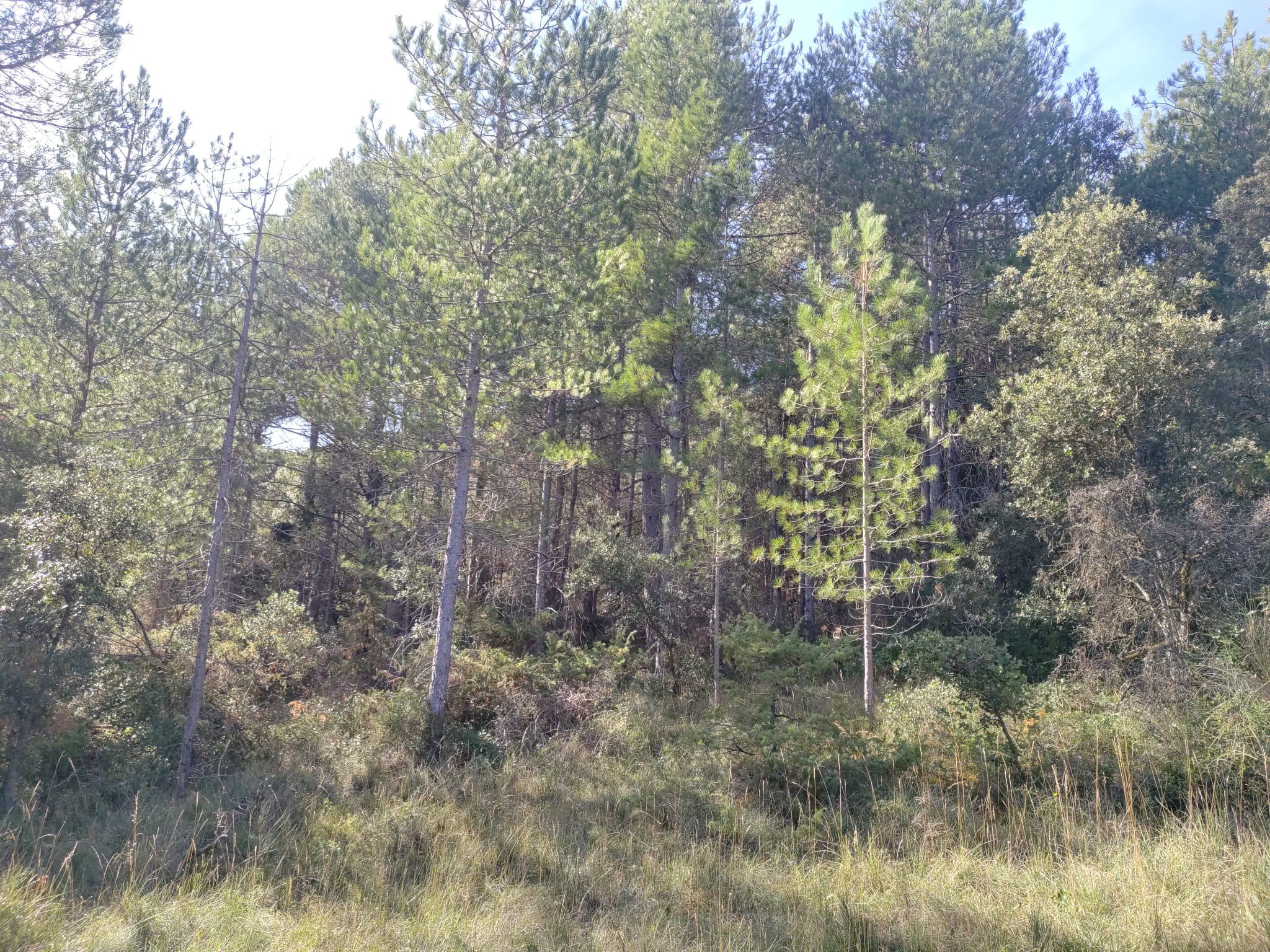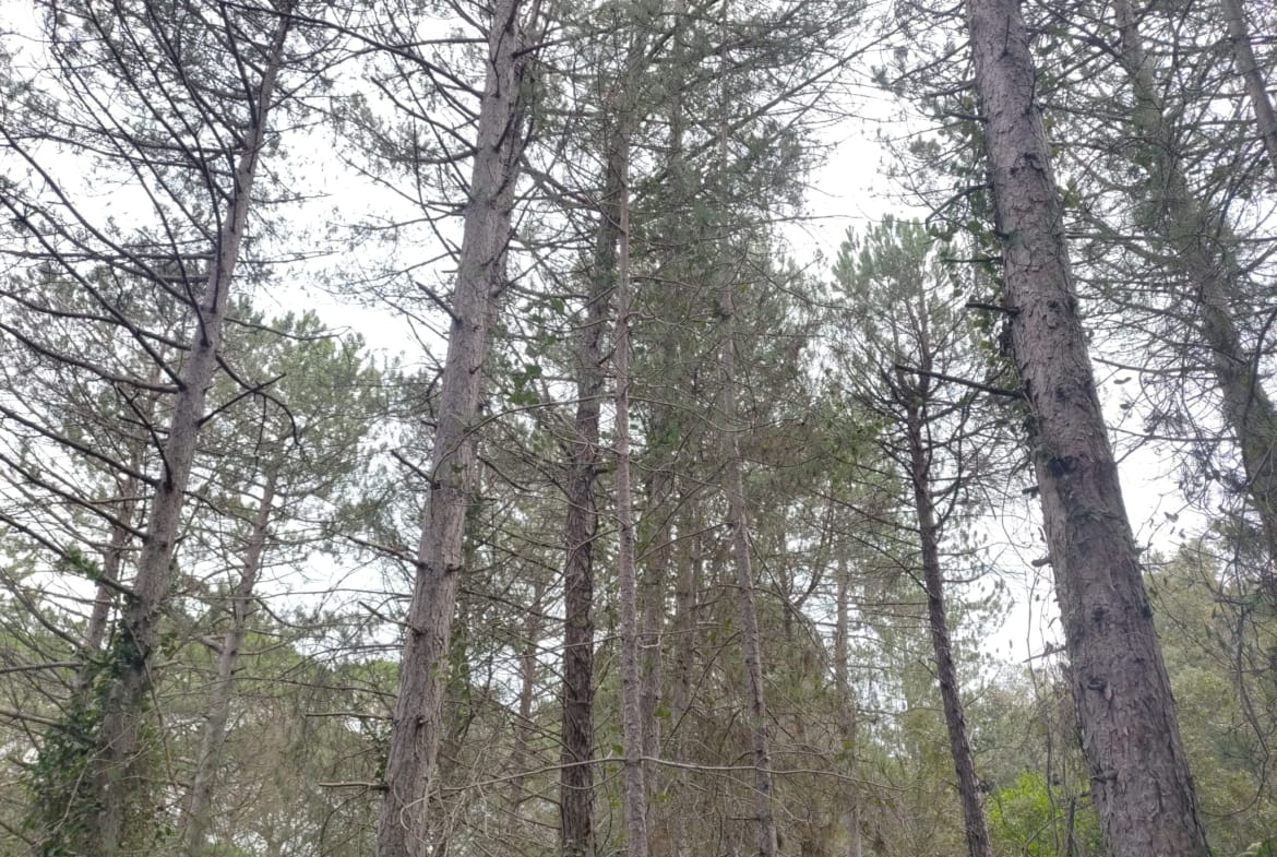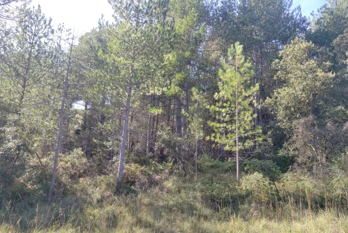 On retrouve également des pins maritimes sur les parties hautes de la parcelle, de gros diamètres mais fortement branchue, tandis que les pins Laricio , plus droit et fin, offrent un meilleur potentiel en qualité de bois d’œuvre. La forêt est en phase d’exploitation, avec un potentiel de récolte immédiate, notamment pour la production de bois de chauffage.