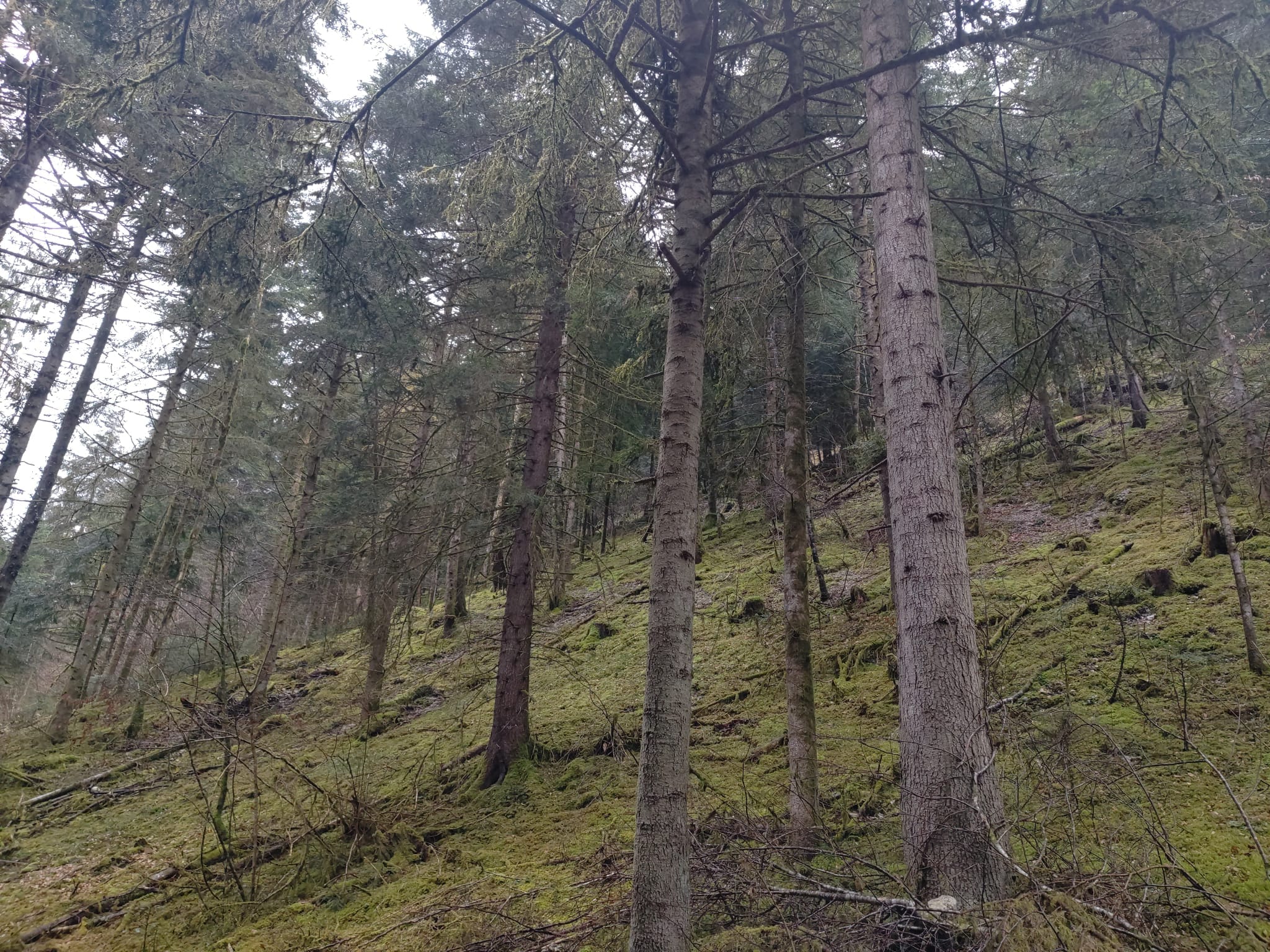 Épicéa (Picea abies) : Présent en complément, contribuant à la diversité du peuplement et à la résilience de l’écosystème forestier.