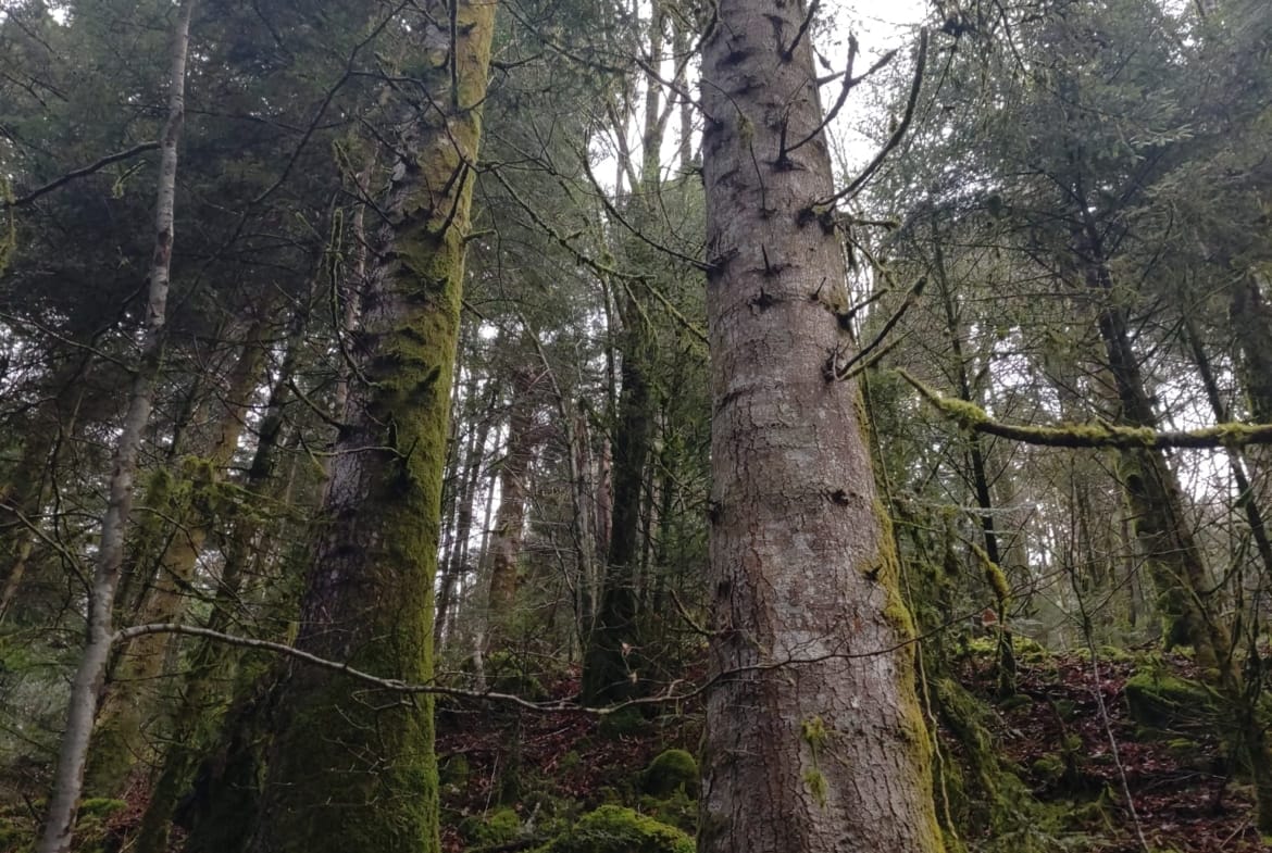 Sapin pectiné (Abies alba) : Essence majoritaire, caractérisée par des sujets de gros diamètre, adaptés à la production de bois d’œuvre de qualité.