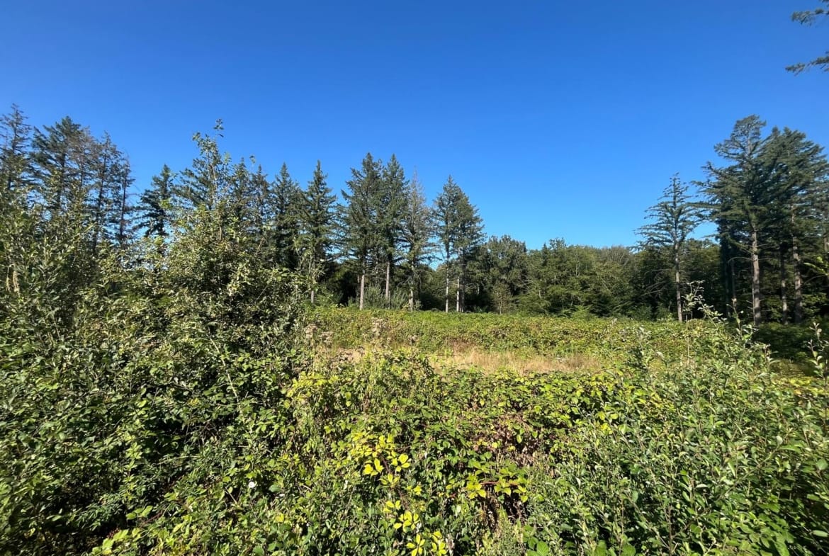 Actuellement issue d’une futaie régulière de douglas de 40–45 ans en fin de cycle et dépérissante sur environ 8,5 ha, la propriété sera vendue nue de tout peuplement à l’issue du contrat d’exploitation prévu à l’automne 2027. Elle constitue ainsi un support adapté à un reboisement intégral, reposant sur une diversification : chênes sessile ou pédonculé pour la valorisation longue, chêne rouge à croissance dynamique, pin maritime pour sécuriser la production intermédiaire et robinier comme essence pionnière. Cette combinaison renforce la résilience climatique et sanitaire tout en assurant une meilleure lisibilité patrimoniale.
